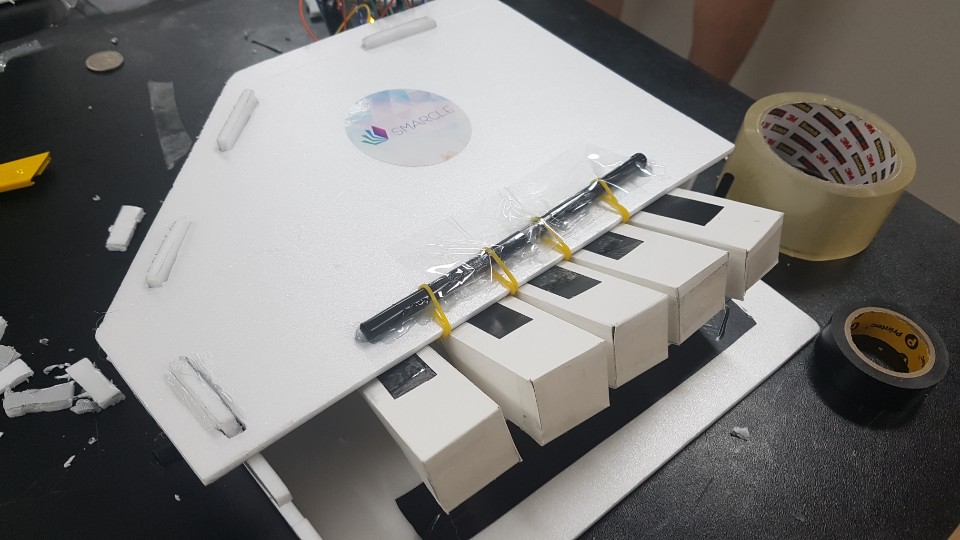 그래서 한 며칠동안 학교 수업이 끝나고 실습실에 남아 피아노 모형을 만들고 아두이노에 연결도 시켜보고